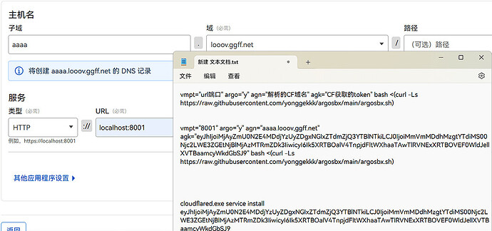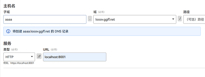 (5) 子域名可自定义——选择已托管在CF的主域——类型选择HTTP——URL 后的端口(如 8001)可随意填写(CF 隧道不依赖 VPS 端口映射)
